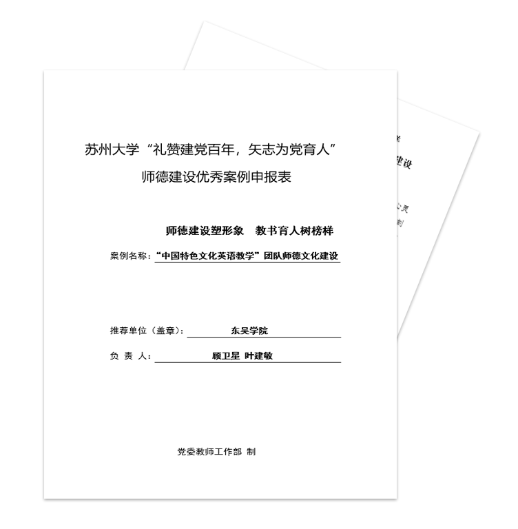 我院大学外语系顾卫星教授、叶建敏副教授团队的《师德建设塑形象、教书育人树榜样——“中国特色文化英语教学”团队师德文化建设》入选师德建设优秀案例。