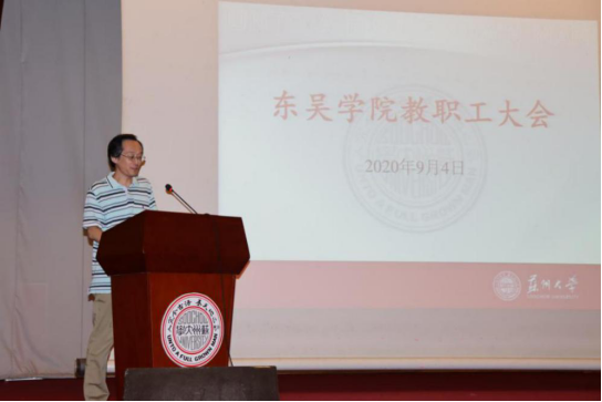 江美福副院长指出,学校整合基础公共课教师资源,单独成立东吴学院,必将有效推动苏州大学的公共基础课教学创新发展、共赢共享。他汇报了学院成立以来,各学系老师积极申报各级各类项目、课程比赛,并取得了一些令人鼓舞的成绩,并通报了教师发展与教学研究方面的下半年主要工作要点。