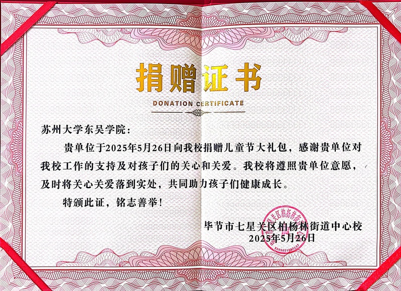 苏州大学东吴学院携手“童”行团队赴贵州开展"六一"捐赠活动