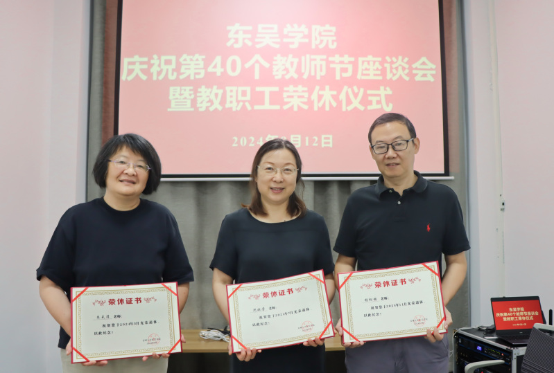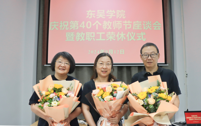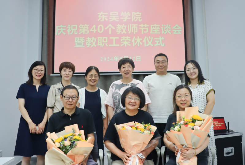 在庆祝第40个教师节之际,东吴学院于9月12日在4号楼101室举行了2024年教师荣休仪式暨“结对子”“传帮带”活动。党委书记孙宁华、院长吴雪梅、荣休教师代表、青年教师代表、综合办公室主任、教学管理办公室代表参加了此次活动,孙宁华书记主持。