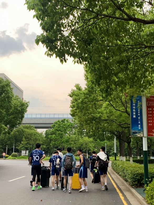 伴着黄昏和笑语,苏州大学代表队乘着微风返程,回到美丽的校园继续他们的排球情缘。