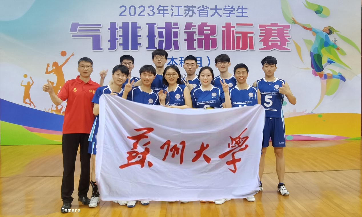 5月28日下午,2023年江苏省大学生气排球锦标赛(本科组)在南京医科大学圆满落幕。我校学生排球健儿众志成城,顽强拼搏,获得了第三名的优异成绩。此次比赛由江苏省学生体育协会高校工作委员会主办,在南京医科大学江宁校区体育运动中心进行。比赛共有十六所江苏省高校派出代表队参加,我校排球队由公共体育系沈文熹副主任担任领队,杜小伟老师担任主教练,十名队员分别来自于电子信息学院、沙钢钢铁学院、教育学院、纳米科学技术学院、苏州医学院、王健法学院和轨道交通学院等学院。