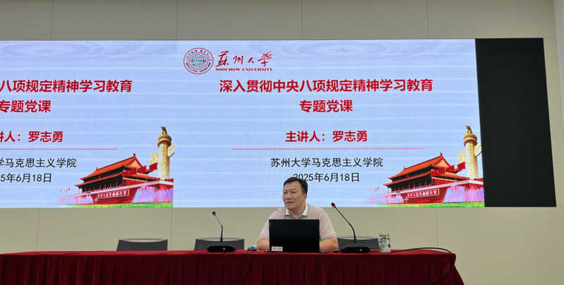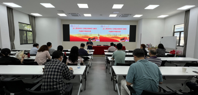 2025年6月18日,东吴学院爱雅堂报告厅内,大外系教师第二党支部与马克思主义学院教师第二党支部在此联合举办深入贯彻中央八项规定精神学习教育共建联学活动。本次活动由大外系教师第二党支部书记高燕红主持,双方支部党员积极参与了此次活动。