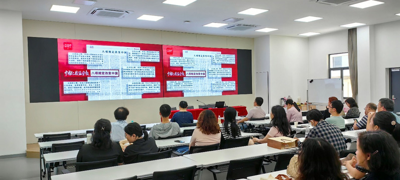 在专题党课环节,马克思主义学院教师第二党支部书记罗志勇带来了一场精彩的报告。报告以五个维度展开系统阐释:立足历史方位,系统阐释了中央八项规定出台的战略背景,深刻剖析了新时代全面从严治党面临的形势与需求;逐条解读了中央八项规定的核心要义,通过条分缕析地讲解帮助党员准确把握精神实质,厘清各项具体要求的实践边界;运用图文并茂的政策图解,以可视化手段系统呈现规定要点,构建起立体化的认知框架;通过展示中央八项规定实施后的显著成效,全景式呈现了中央八项规定实施以来党风政风持续向好、社会风气清朗向上的历史性变革;立足新时代全面从严治党实践,总结提炼了贯彻落实中央八项规定精神的规律性认识,引导党员教师将纪律规矩内化于心、外化于行,在教学科研中始终绷紧作风建设这根弦。最后,罗书记号召全体党员教师牢记“为党育人、为国育才”的初心使命,以“立德树人”为根本任务,以“铸魂育人”为责任担当,在教书育人实践中彰显新时代高校教育工作者的政治本色,以优良作风护航教育强国建设新征程。