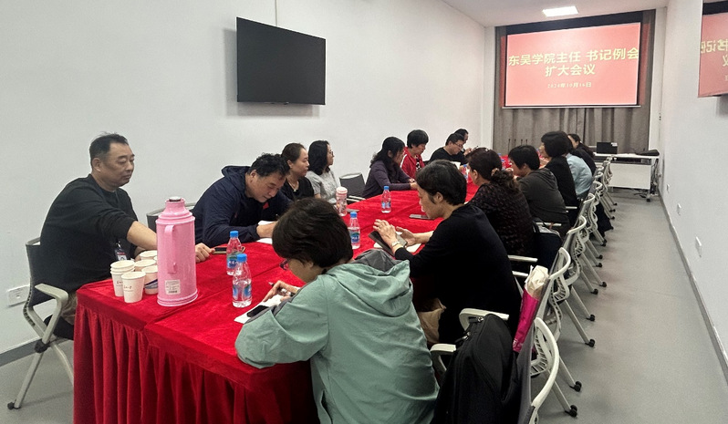 根据学校关于巡视工作的统一部署,2024年10月16日下午,东吴学院召开苏州大学巡视工作宣传会暨主任书记例会扩大会议。党委书记孙宁华作了宣传讲话,领学了贯彻习近平总书记关于巡视工作、高等教育的重要论述、《苏州大学巡视工作宣传方案》。学院领导班子、工会主席、科职干部、系主任、支部书记出席会议。