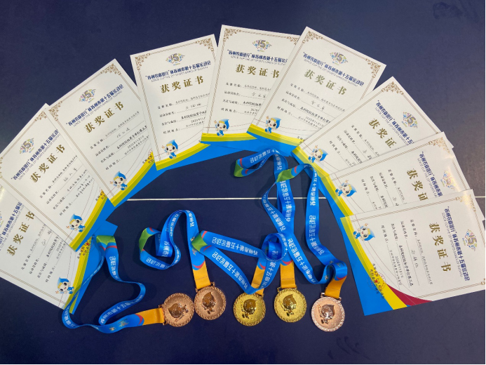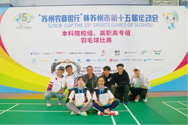 我校羽毛球队在陈忠宇主任的带领下,赵是森教练沉着镇定指挥,根据对手情况及时调整技战术,充分发挥运动员各自的特点,时而吊球,时而扣杀。面对场上强手,依然敢打敢拼,展现苏大羽毛球队积极昂扬的精神面貌。由于我们第一次参赛且组队时间较短,女子双打曹沈欣和万松艳在三次遭遇苏科大高水平运动员挑战后,依然不放弃,最终获得第三名的好成绩。男子双打在经过激烈较量后,王飞扬和成远浩获得第四名,段铮洋和陈远帆获得第六名。