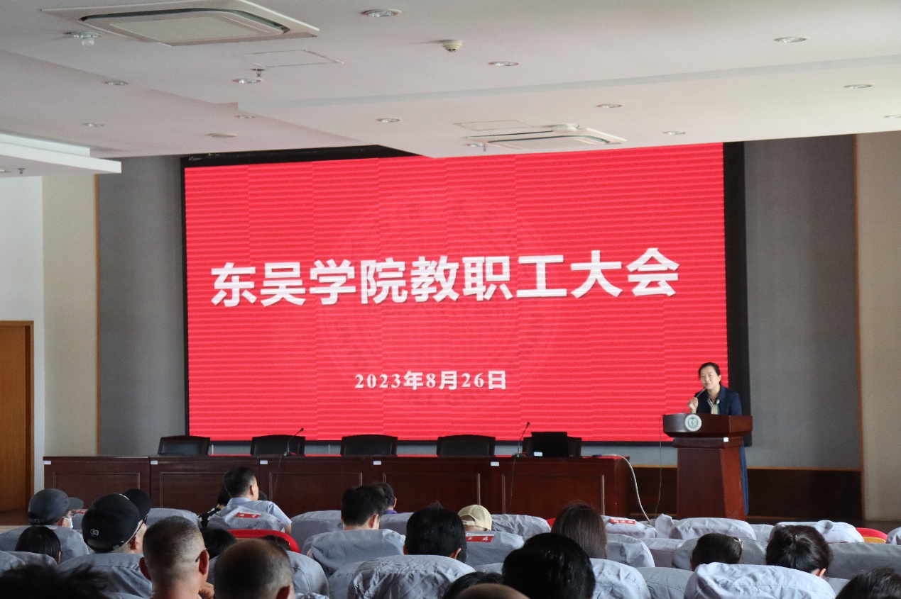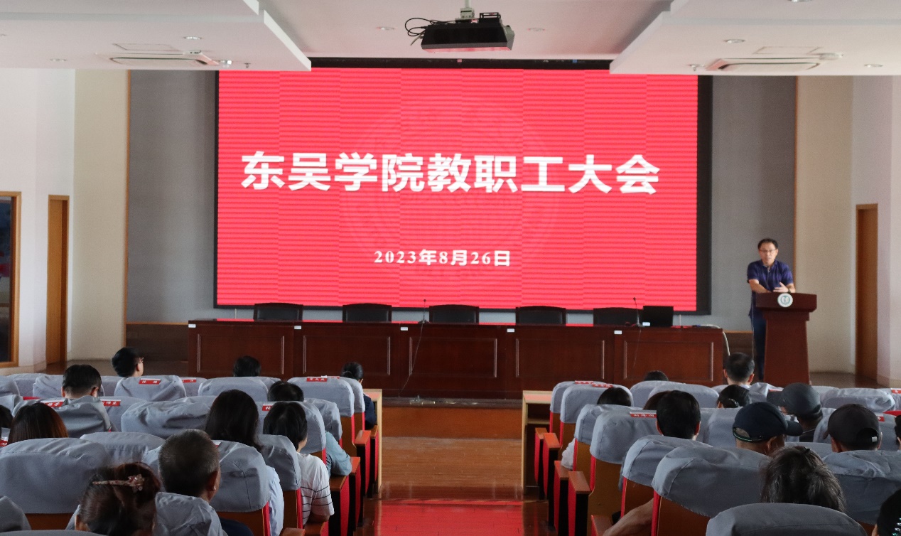8月26日下午,东吴学院在图书馆五楼报告厅召开全体教职工大会。会议由学院党委书记许继芳主持。