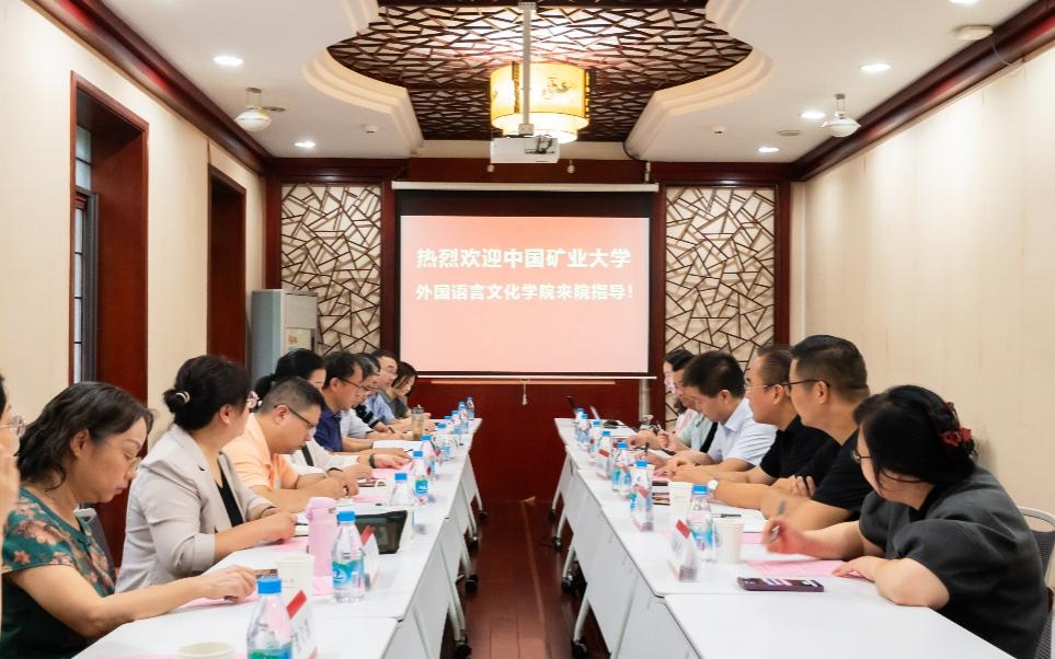 9月15日,中国矿业大学外国语言文化学院党委书记张向东、副院长祖大庆、刘婷婷等一行7人来我院进行调研,院长张健、党委书记许继芳、副院长江美福、喻翔玮、大学外语系副主任高燕红及相关课程负责人参加了调研活动。