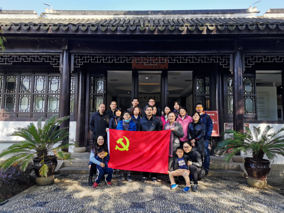 参观结束后,老师们围着党旗,在叶圣陶纪念馆门前留影,真是深受鼓舞和激励的一天。我们必将继承和发扬先生的伟大教育理念,为培养祖国需要的创新型人才奉献自己的力量。