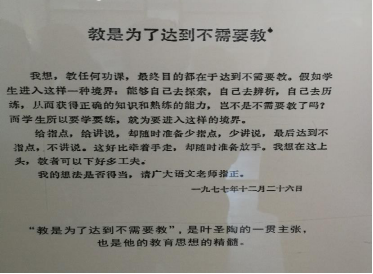 “ 教是为了达到不需要教”,是叶圣陶的一贯主张,也是他的教育思想的精髓。