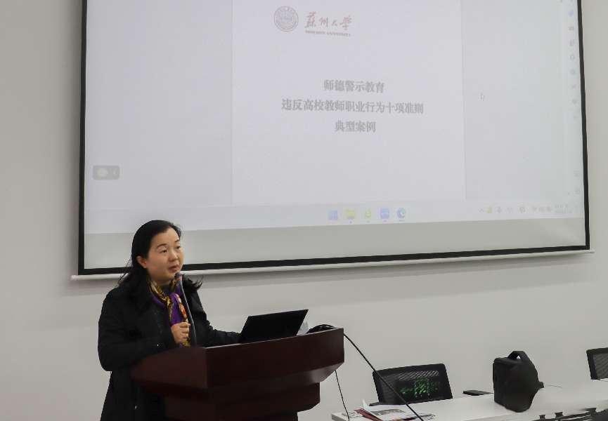 党委书记许继芳要求全院教职工按照学校统一部署,以饱满的热情,扎实的工作投入到本科教育教学审核评估工作中,切实增强责任感和使命感,交出一份满意答卷。随后许书记带领全体教职工一起学习了《新时代高校教师职业行为十项准则》,并结合“违反高校教师职业行为十项准则典型案例”,开展了警示教育。她强调,全院教职工要以案为鉴,切实从师德失范的典型案例中汲取教训,对照新时代高校教师职业行为十项准则,切实规范自身行为,严防违反师德师风问题发生。