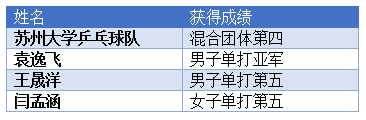 这次比赛中离不开学校和东吴学院领导们的全力支持、张老师和李老师的付出、队员们的努力。虽然略有遗憾地获得了混合团体第四名,队员们未能站上领奖台,但是成绩已经远远超出预期,单打中队员们也获得了理想的成绩。