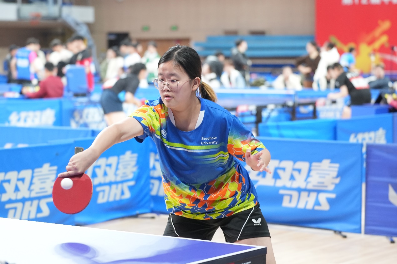 苏州大学乒乓球队(阳光队)是一只成立不久、经验欠缺、但是锐意进取、团结上进的队伍,在张曜老师和李井平老师的带领下,苏州大学乒乓球队拧成一股绳。场上的队员拼尽全力,场下的队员大声鼓励加油,每一分都是两位老师和六位学生一起赢得的。混合团体第四、男单亚军或许是这场比赛的终点,但绝对不是苏州大学乒乓球队在奋斗征程上的终点,苏州大学乒乓球队将不惧困难,勇往直前,期待赛场的再次亮相。