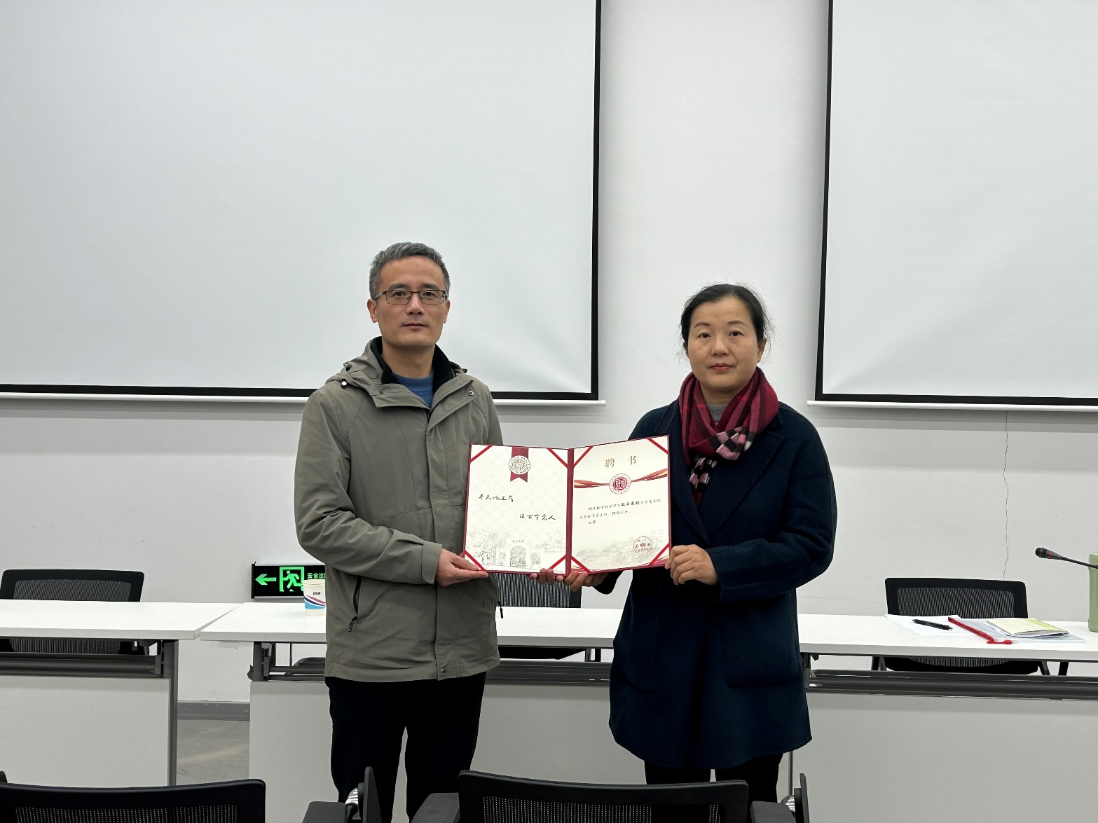 张健宣读了有关任免决定,并简要介绍了赵云教授的基本情况。学院党委书记许继芳为赵云教授颁发聘书。赵云在发言中表示,非常感谢东吴学院的信任,非常荣幸能够成为大学数学系的一员,他将尽最大的努力,认真听取老师们的建议和意见,团结带领全体老师推动大学数学系的各项工作。