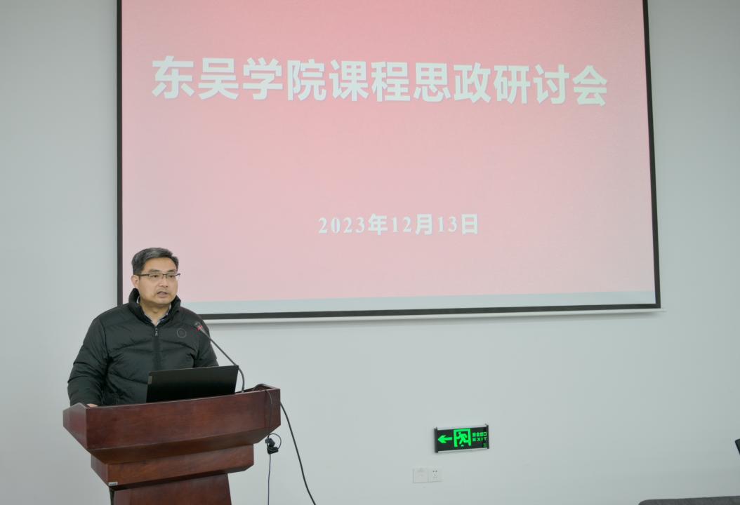 最后,江美福副院长做总结并提出期望。教书育人是教师的天职,学院高度重视课程思政建设工作,今后将定期举办课程思政研讨会议,发挥东吴学院多学系的优势,通过分享有效经验做法,不断推动我院教学改革和教育教学质量的提升。各学系要努力创新思政教育的方法和手段,丰富课程内容,让思政教育更好地融入学生的学习和生活之中。