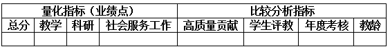学院岗位设置与聘任工作小组对符合申报条件的人员进行综合评价。评价体系坚持“德才兼备、注重实绩”的原则,采用量化计分与客观比较分析相结合的复合评价方式。具体实施中,以量化指标总分为主干,客观指标顺位比较为校准,确保评价的科学性与公正性。量化指标包含:教学科研业绩点(以学校最终认定结果为准)、社会服务工作(具体业绩点折算方法详见《实施办法》附件3),客观比较分析指标包含:高质量贡献、学生评教、年度考核结果及教龄。