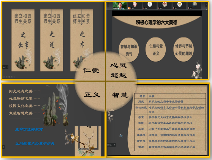 黄教授以“案例”开场,用互动形式激发老师对表象问题的深层思考。黄教授运用建立和谐师生关系之叙事、之道、之术的“三明治”教学法,阐述了建立和谐师生关系的核心要素是“尊重和懂得学生”,针对学生发生的问题都必须从不同视角了解学生、关心学生,通过“问题、关系、文化、基因”等不同方面去综合地分析、研究学生的学习和生活。