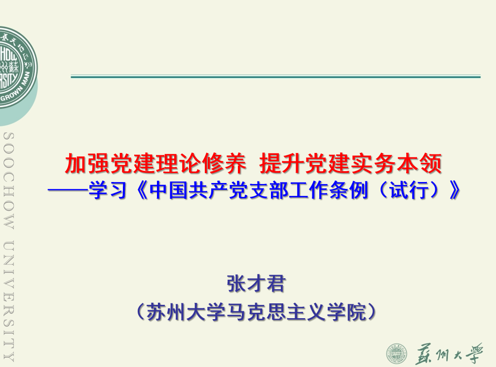 张才君教授从新时代基层党务工作者的基本素养、新时代基层党建工作的实务与技巧、新时代基层党建工作面临的挑战与思考三个方面开讲,理论联系实际,案例鲜活、内容精彩、受益匪浅。其中深入解读了《中国共产党支部工作条例(试行)》(以下简称《条例》),《条例》以习近平新时代中国特色社会主义思想为指导,贯彻党章要求,对党支部工作作出全面规范,是新时代党支部建设的基本遵循。认真贯彻落实《条例》,加强党支部标准化、规范化建设,不断提高党支部建设质量。