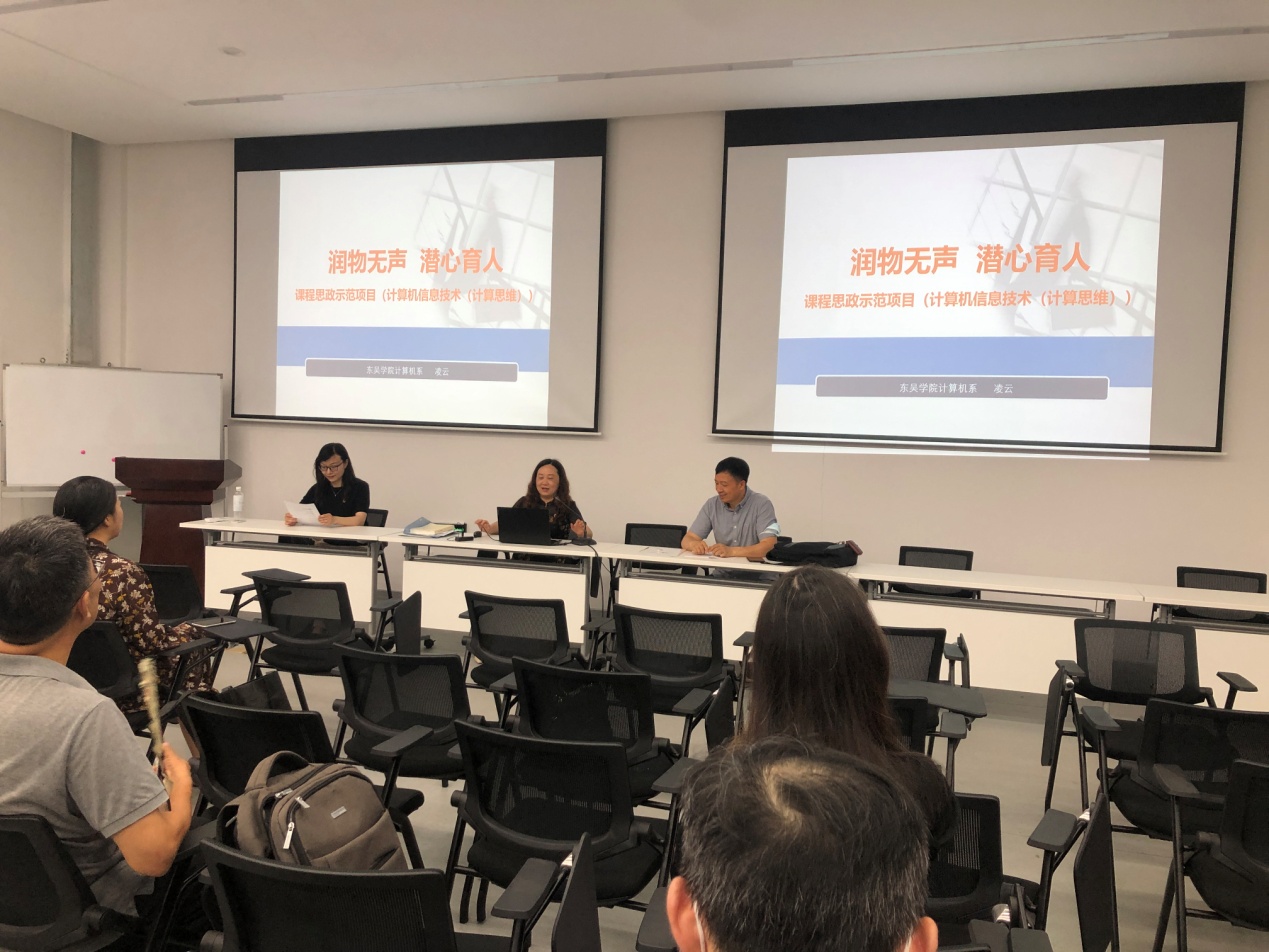 计算机支部凌云老师和大外二支部张卓主任作为院优秀党员分别和广大党员交流各自学系开展课程思政实践经验。凌云老师从计算机信息技术课程思政简介,总体思路,实践和努力方向四个方面向大家演示如何做到以润物细无声的方式落实立德树人根本任务。张卓主任根据大学外语系老一辈教学团队的付出,取得的国家应用课程示范成果,结合现在大学外语教学指南的变化,新文科教学理念的要求,提出旨在提高学生语言运用能力、解决问题的能力,加强学生中华优秀思想文化的传承,将思政理念全方位融入教学中的教学目标。同时加强教学团队合作建设。