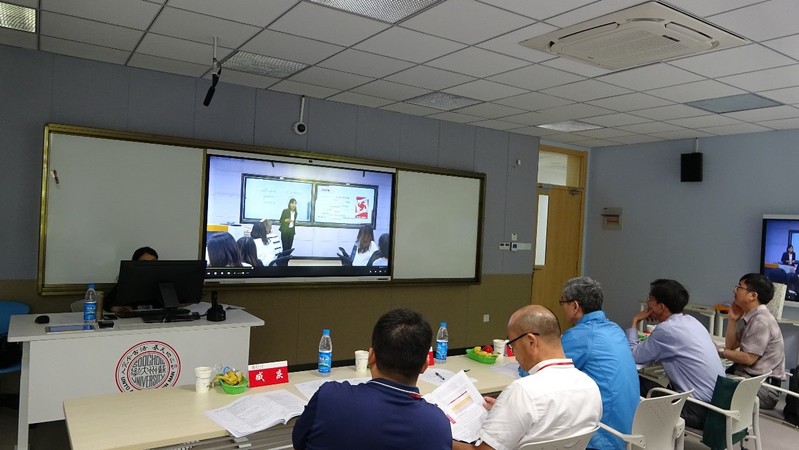 半决赛分为大学英语A组、大学英语B组、英语专业组、高职高专组四个赛场,场地分设在博远楼四间智慧教室。每个赛场设五名评审专家、两名记分员以及一名负责播放参赛视频的教师。经过评审专家现场评分,半决赛共筛选出10支队伍进入次日的省级决赛。