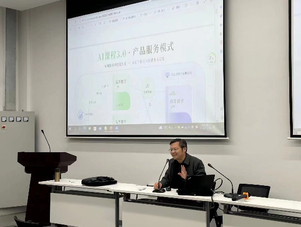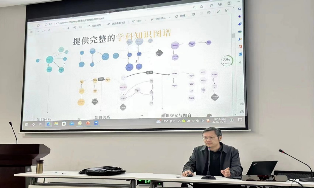 首先,大学数学系王益副教授作题为“基于智慧树网平台的高等数学课程建设”的学术报告。王老师从目前正在建设的高等数学AI课程建设出发,介绍了AI课程建设的时代背景、高等数学的知识图谱、测试题库以及教师如何利用智慧树平台诊断教学效果和学生的学习情况等。