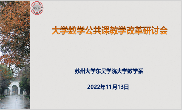 2022年11月13日苏州大学东吴学院大学数学系举行大学数学公共课教学改革研讨会。大学数学系全体教师参加了此次会议,会议由学系主任王健敏教授主持。