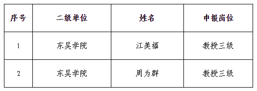 公示期内如有异议,请向学院办公室(电话:65229218,邮箱:zhouyanchi@suda.edu.)或校岗位设置与聘用工作领导小组办公室(电话:67503148,邮箱:liuxuan@suda.edu.cn)反映。