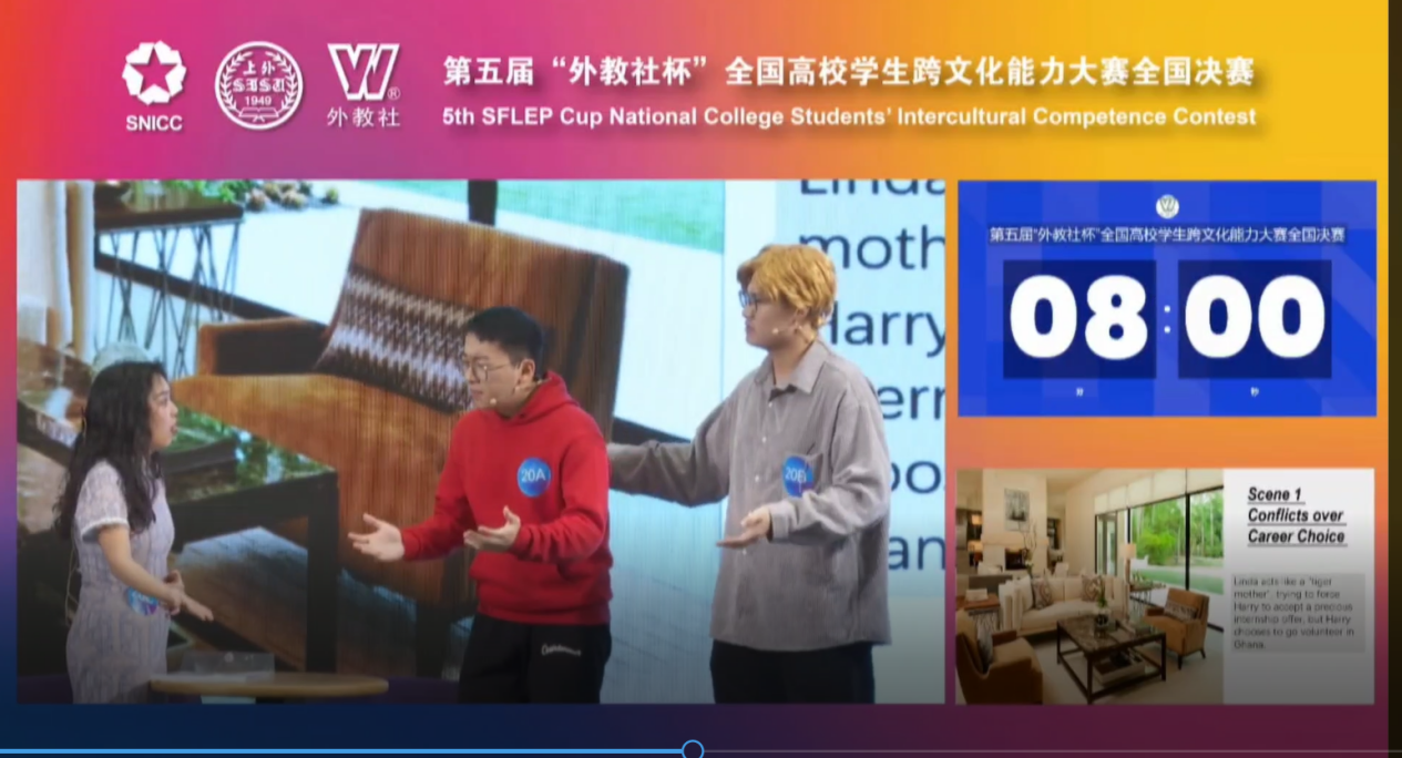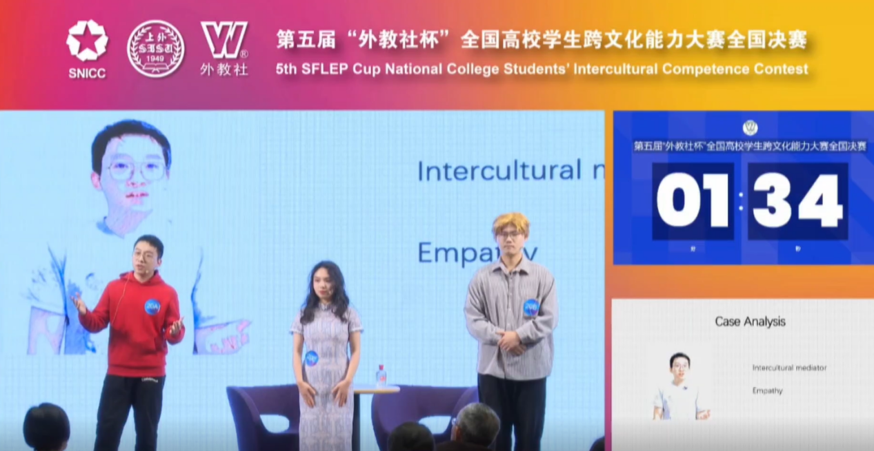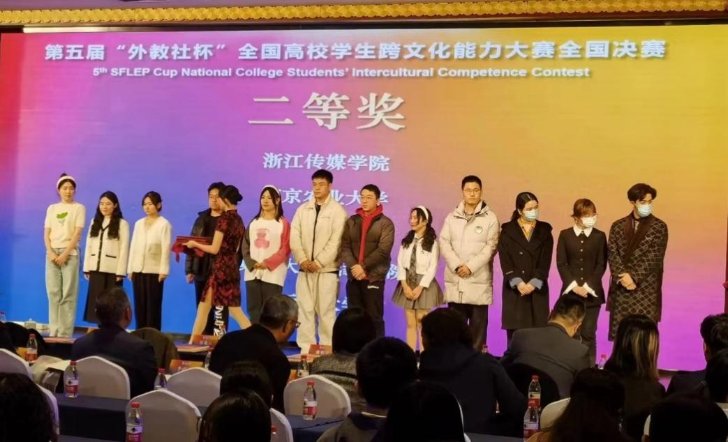 2023年2月24日-25日,第五届“外教社杯”全国高校学生跨文化能力大赛全国决赛在上海举行。经过两天的激烈角逐,我校三位选手凭借出色的语言水平、创新能力和合作精神,获得了评委嘉宾的一致好评,在此次全国决赛中获得了中国学生组二等奖,这也是我校代表队历年来在该赛事中取得的最佳成绩。