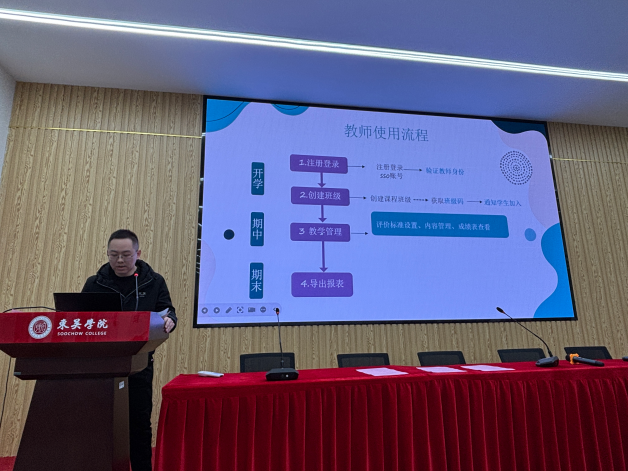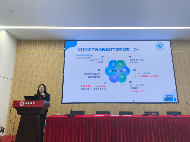 2025年3月4日,苏州大学东吴学院大学外语系举办2025年春季学期首场题为“数智赋能,融合创新”的教学研讨会,会议聚焦大学外语教学的数智化转型,特邀苏州科技大学王妍教授及外教社智慧技术专家,分享数智化教学经验,并结合大外教学实际需求,系统解析数智平台功能、实操案例与融合策略。全体大外教师参会,围绕“数字化工具应用”,“教学模式创新”等议题展开深入交流。此次会议由东吴学院院长吴雪梅教授主持并致辞。