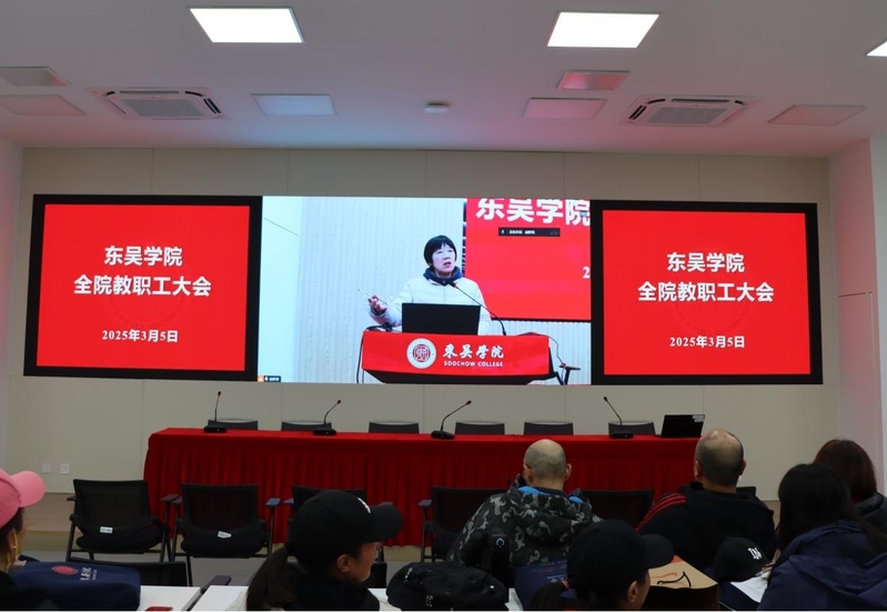 2025年3月5日下午,东吴学院在爱智堂、爱雅堂召开全院教职工大会,会议由党委书记孙宁华主持。